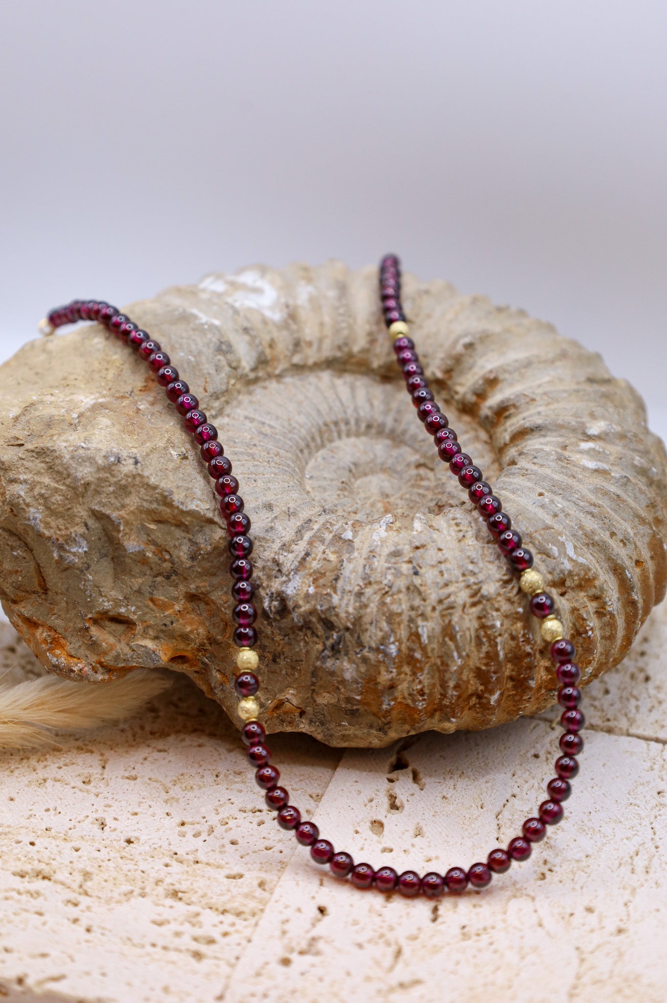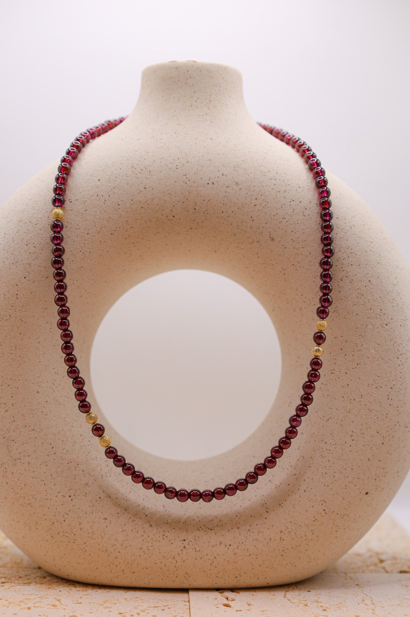 - Festliche Anlässe: Kombinieren Sie das Collier mit passenden Granat-Ohrsteckern oder einem Goldarmreif, um das Rot-Gold-Thema aufzugreifen.