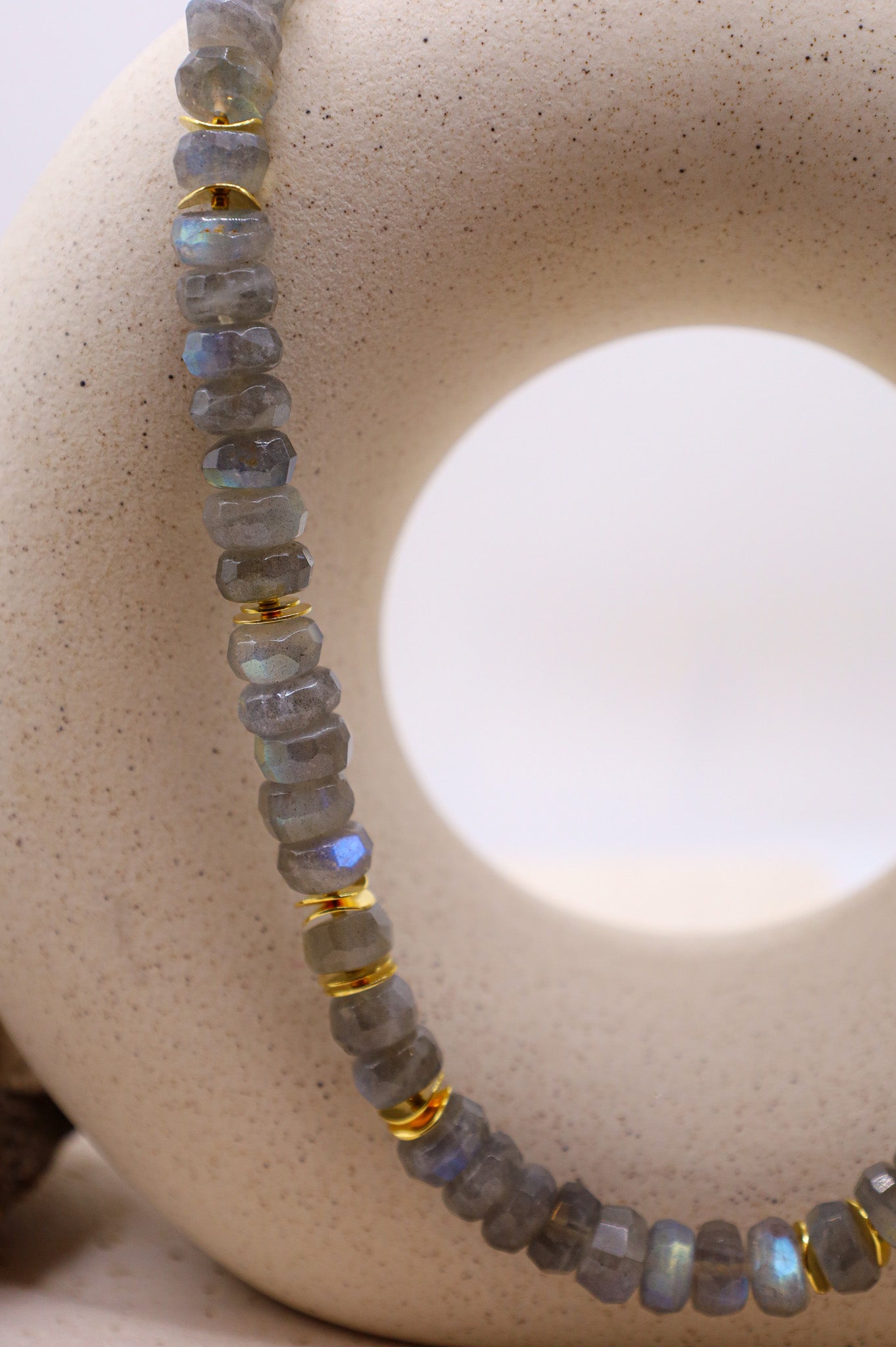 Handgefertigte Labradorit-Kette mit Gold-Akzenten