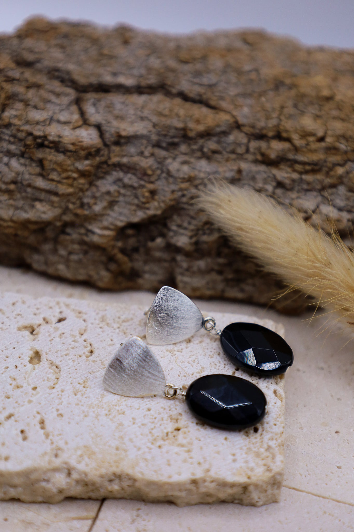 Diese Onyx Ohrringe sind das ideale Accessoire für die Frauen, die minimalistische Linien mit einem interessanten haptischen Element sucht. Die Kombination aus kühlem Silber und dem mystischen Schwarz des Onyx ist zeitlos und kraftvoll.